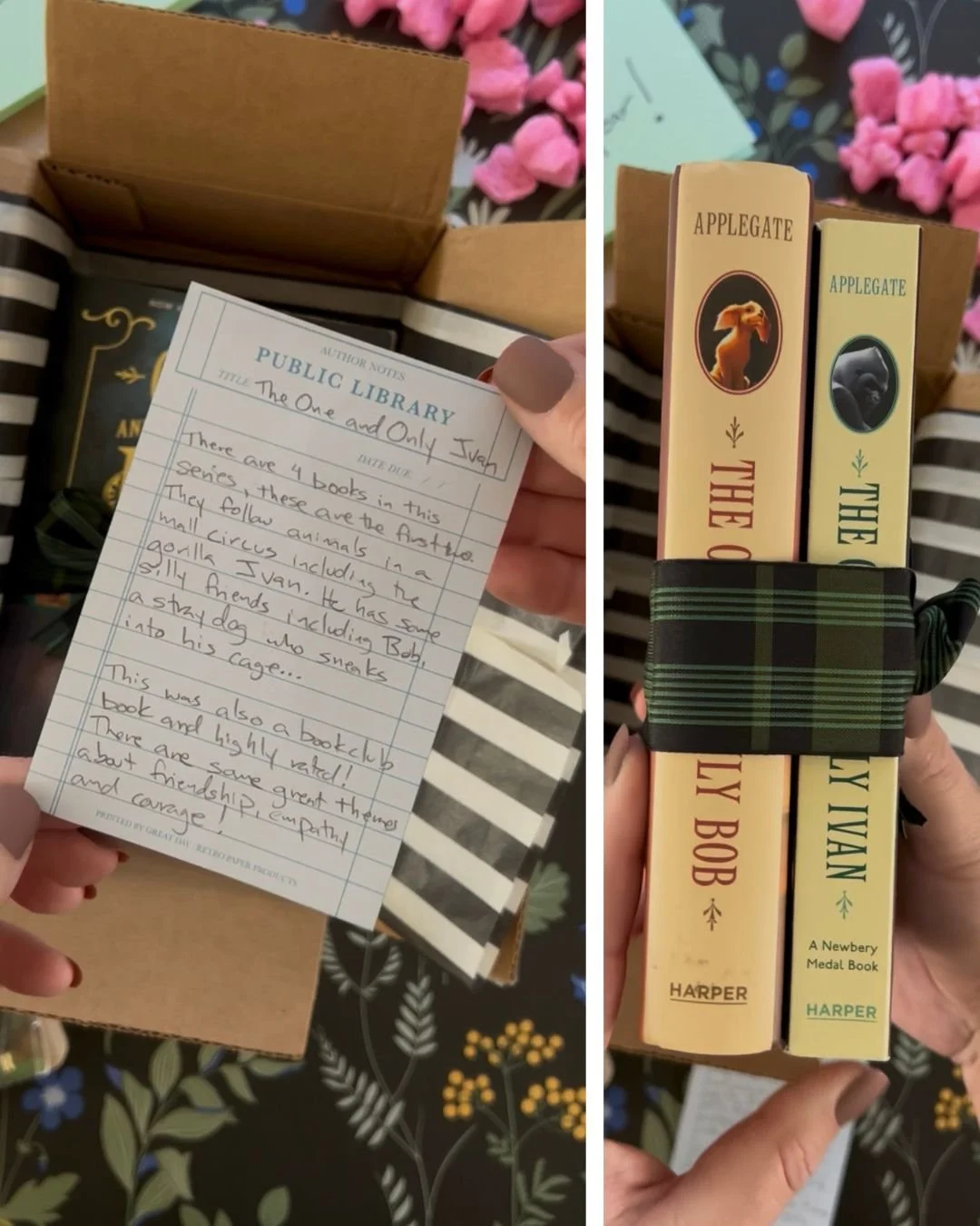 The first set of books I included were the secret The One and Only Ivan and The One and Only Bob. We read the One and Ony Ivan for our book club and ALL the kids LOVED it!